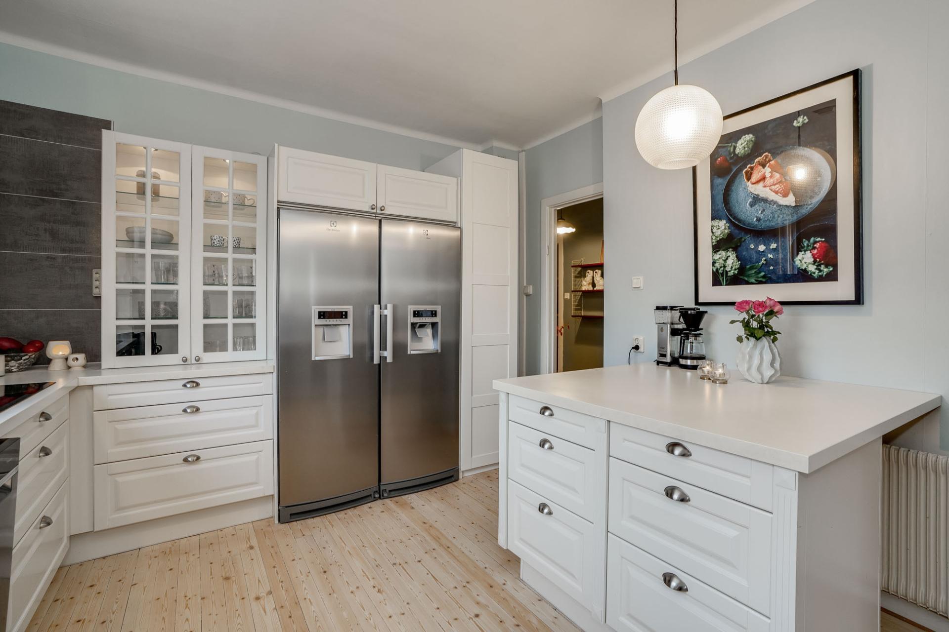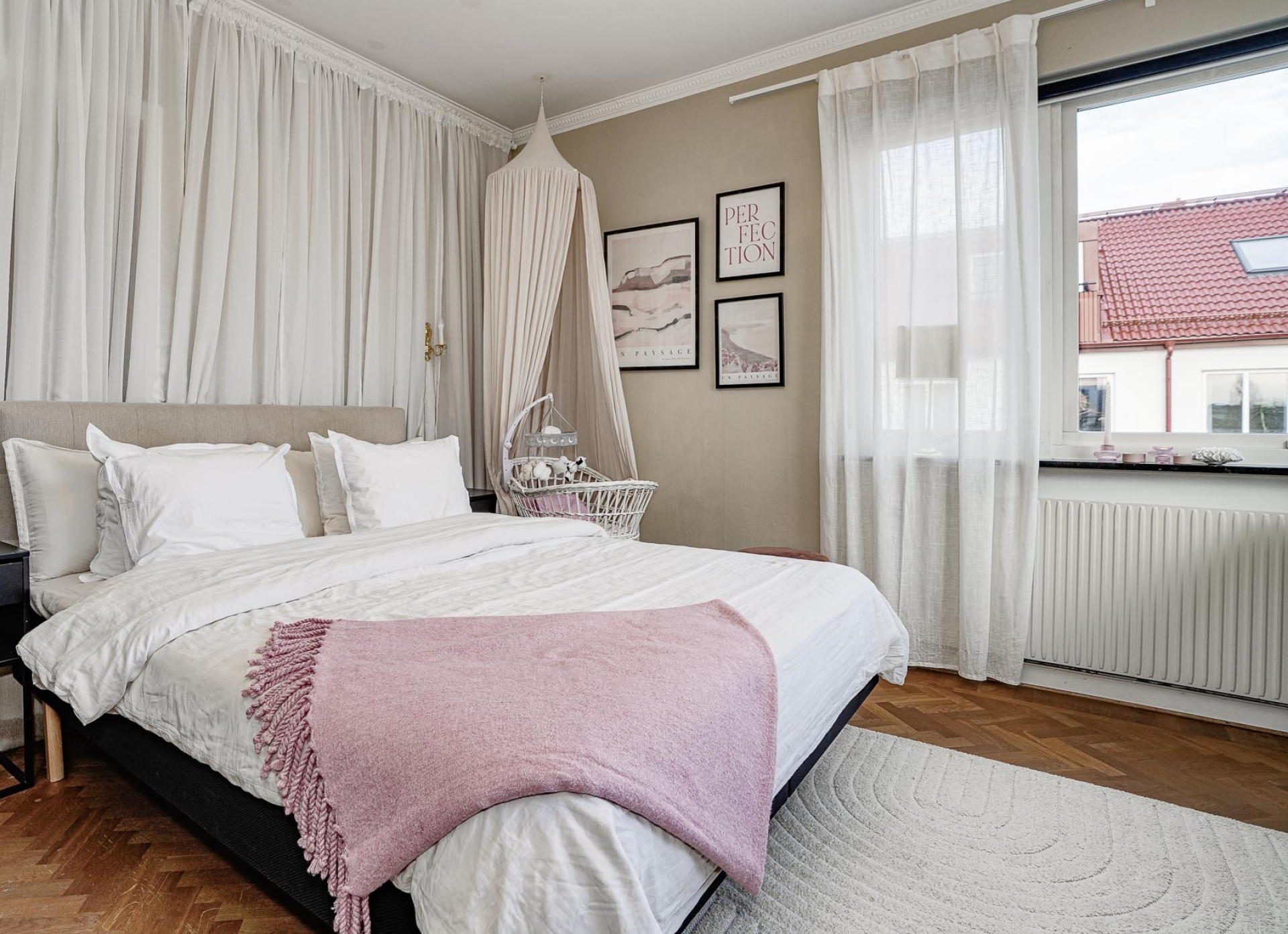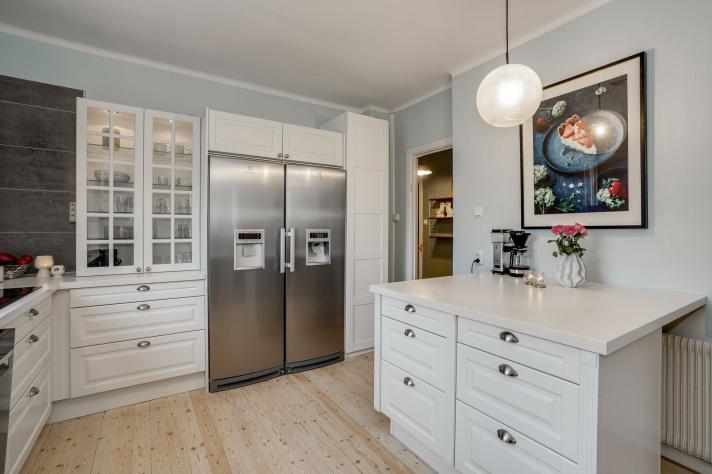 Planlösningen anpassar sig lätt efter dina behov, här får du tre flexibla rum som du använder till sovrum, bibliotek, arbetsrum eller matsal. Det generösa vardagsrummet med balkongen intill, är den naturliga samlingsplatsen och även om den öppna spisen inte är eldningsbar så pryder den verkligen rummet. Även det moderna köket bjuder in till gemenskap med sin sociala och praktiska köksö. Det som är allra senast renoverat i hemmet med behagliga färgval och fin utformning är badrummet och gästtoaletten. Sätt check på denna kostsamma investering!