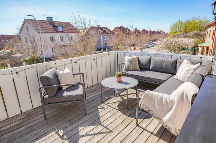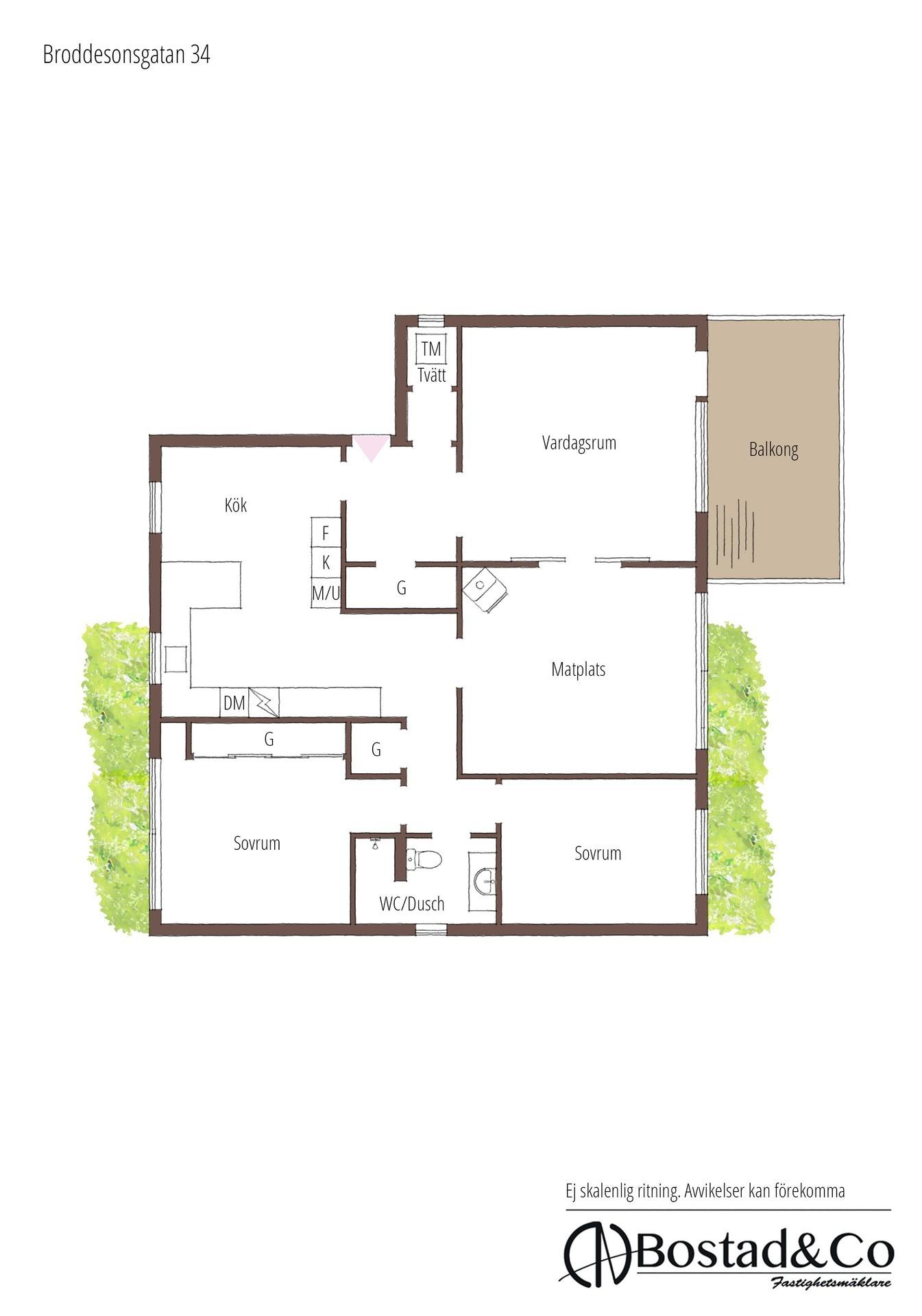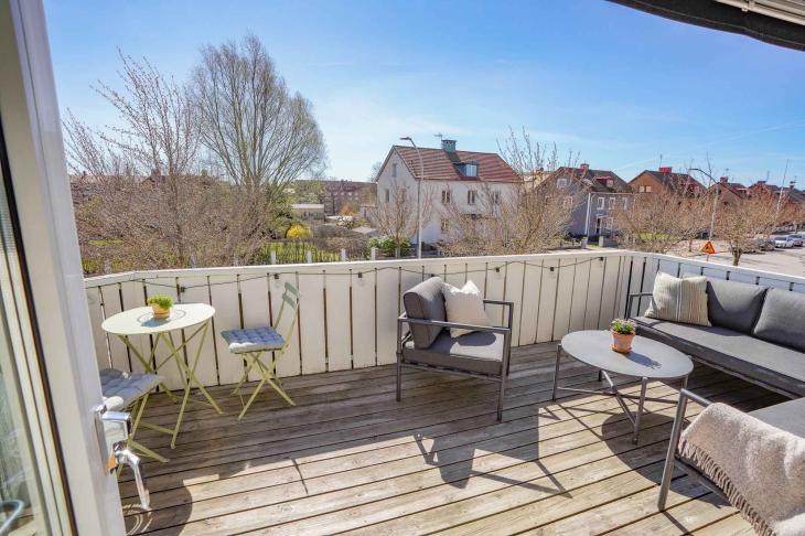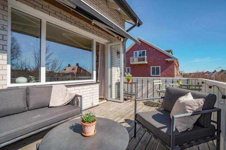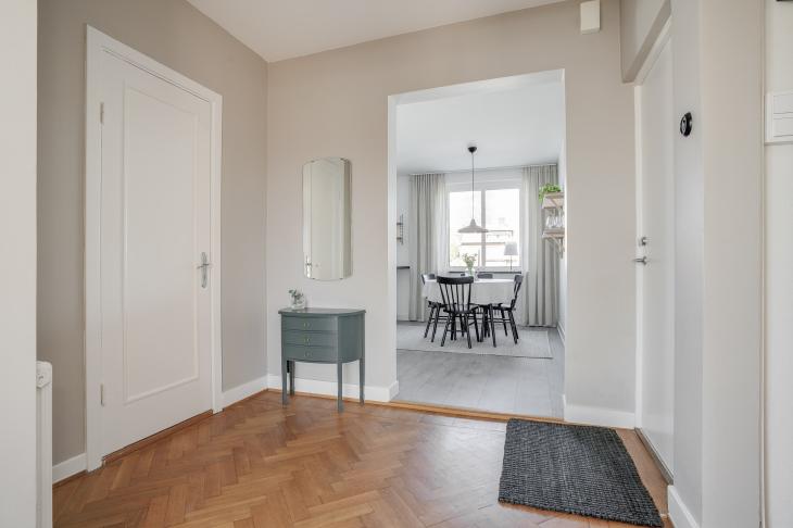 Bostaden erbjuder generösa sällskapsytor med både vardagsrum och separat matsal, två rogivande sovrum samt goda förvaringsmöjligheter genom klädkammare. Från vardagsrummet nås balkongen som är utrustad med markis och har sol under större delen av dagen.