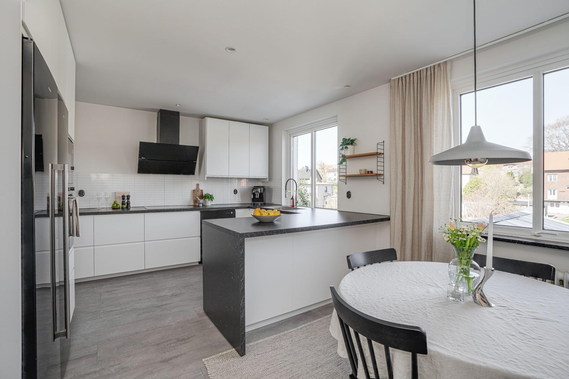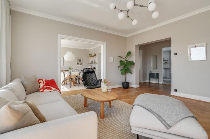 På attraktiva Väster erbjuds denna stilfullt renoverade bostad med välplanerade ytor och bevarade detaljer som skapar en trivsam helhet. Här möts klassiska inslag såsom fiskbensparkett och kakelugn av moderna renoveringar, där köket från 2021 utgör hemmets naturliga samlingspunkt.