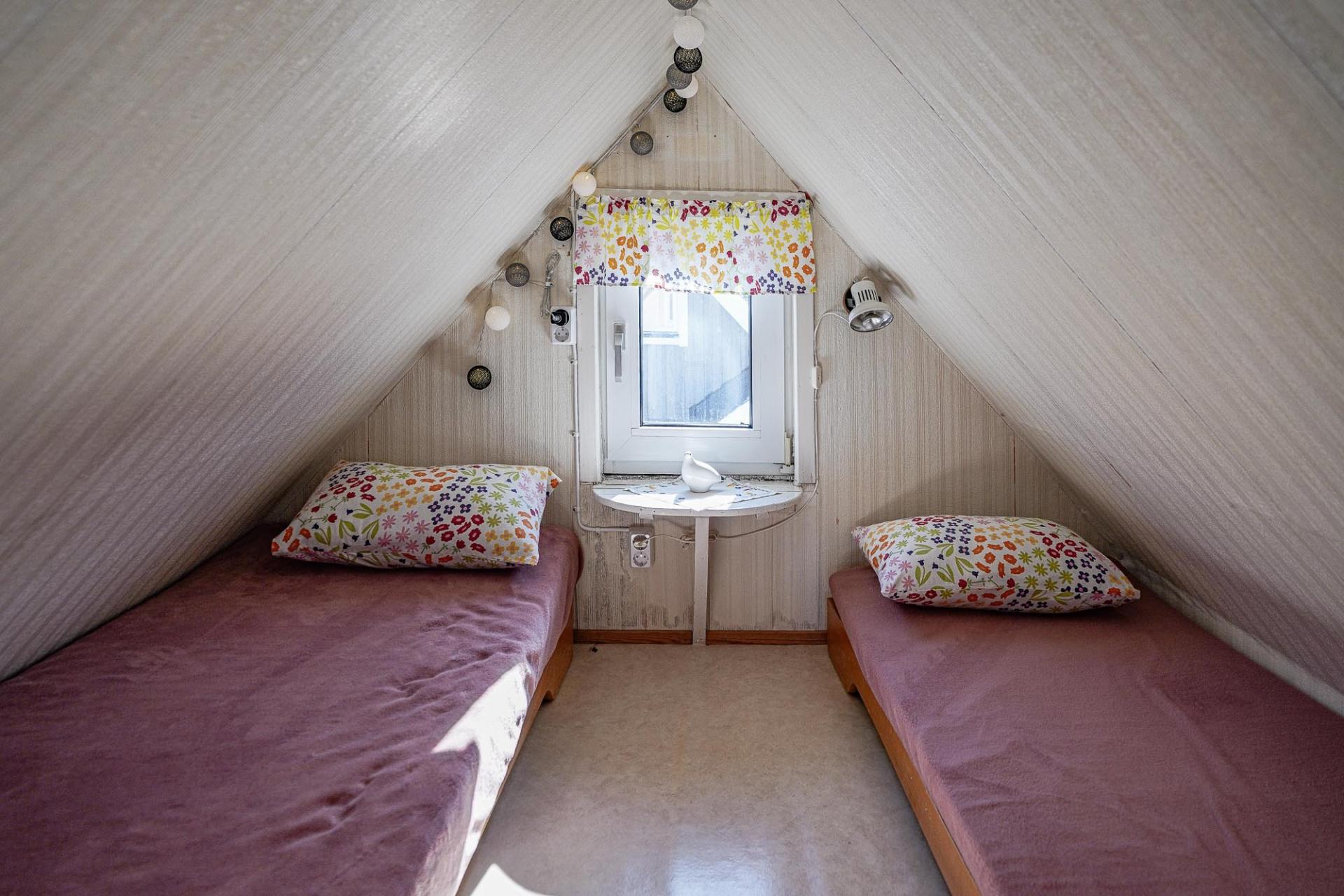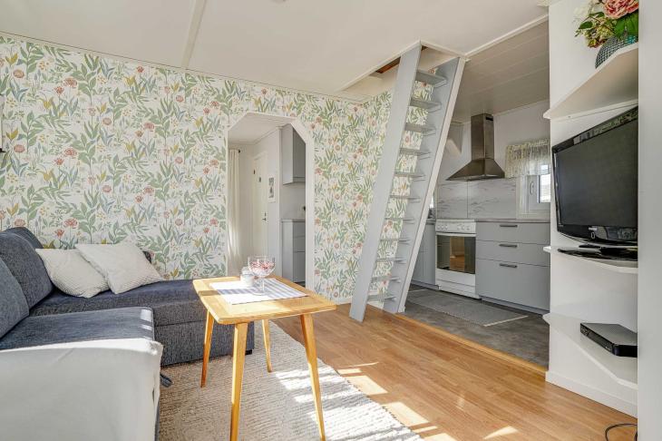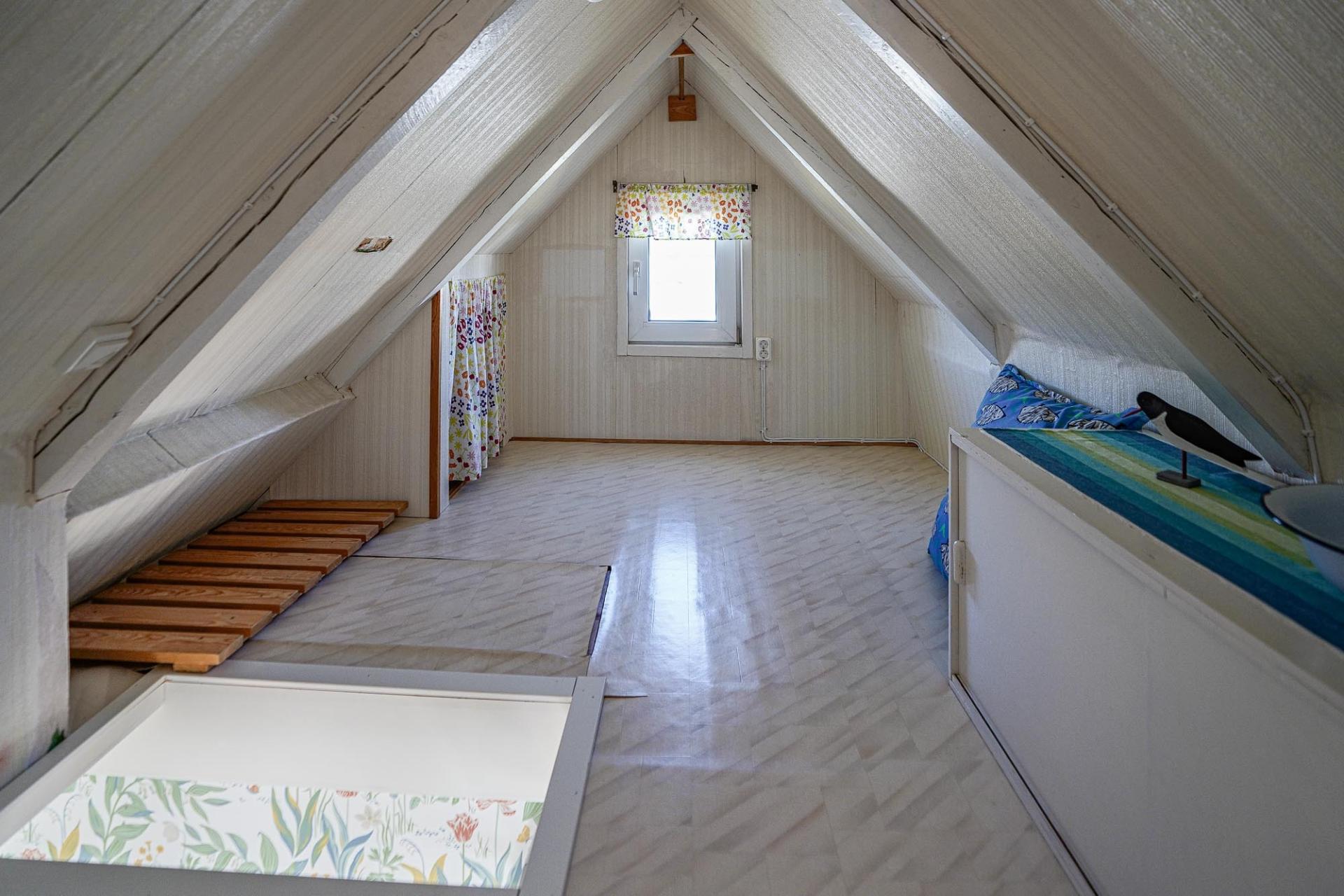 Stugan inrymmer även ett sovrum på entréplan samt ett mysigt sovloft som ger extra sovplatser och flexibilitet för familj och gäster. Sovloftet har ett visst behov av renovering av dess ytmaterial.