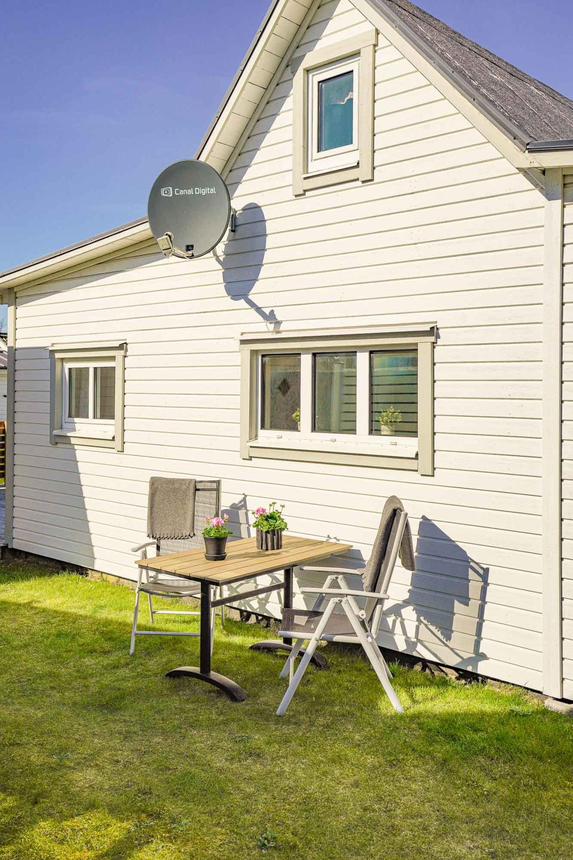 Charmig stuga med gästhus och härlig uteplats – nära havet.