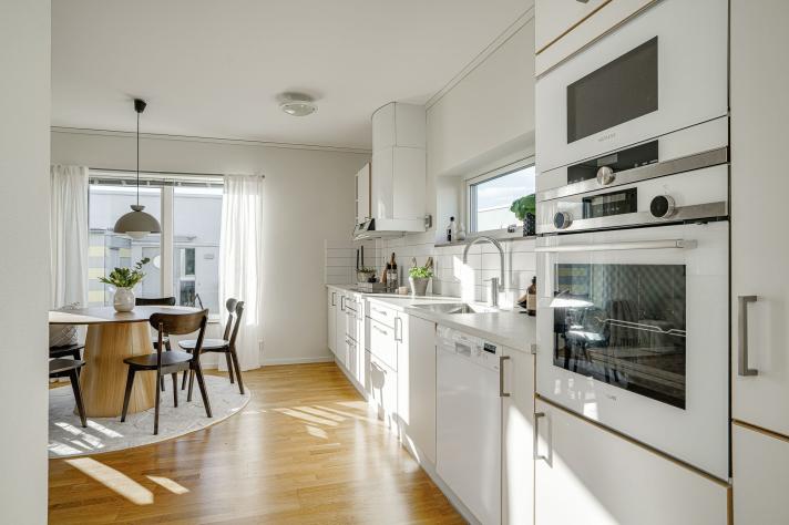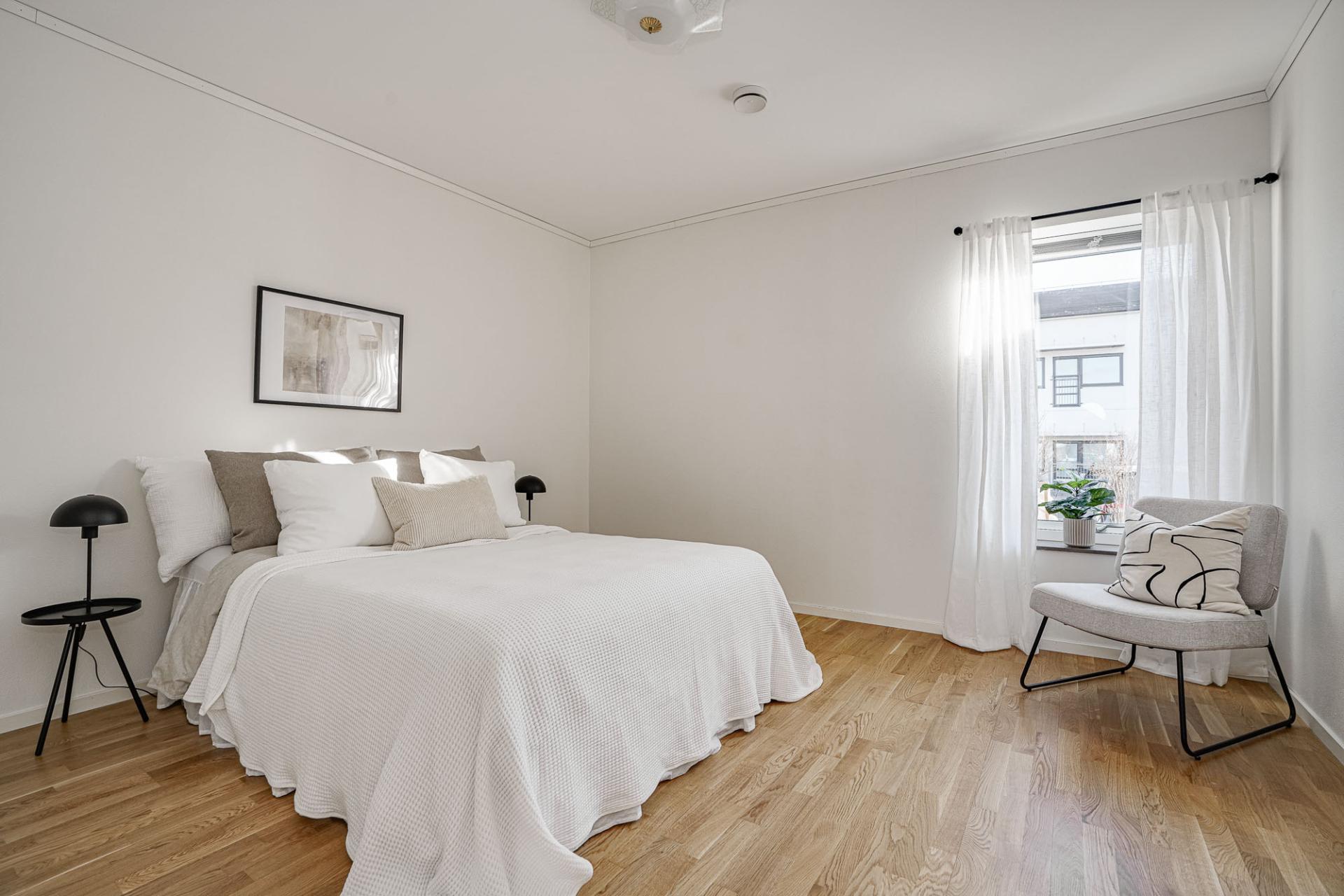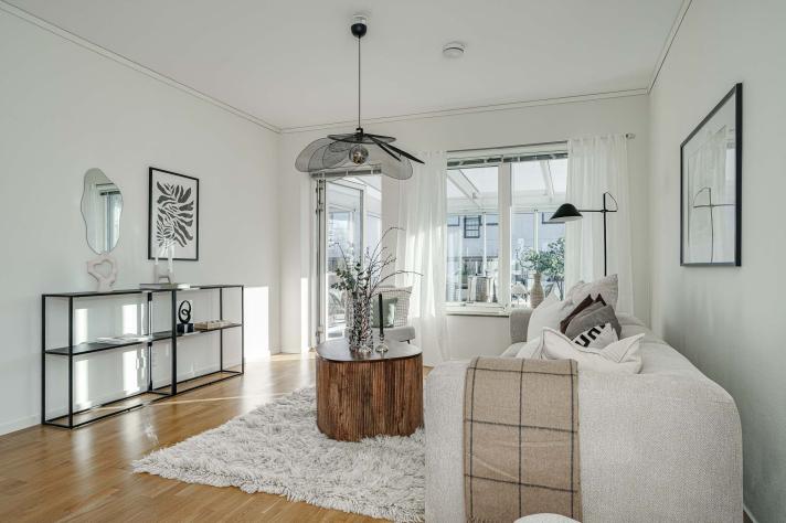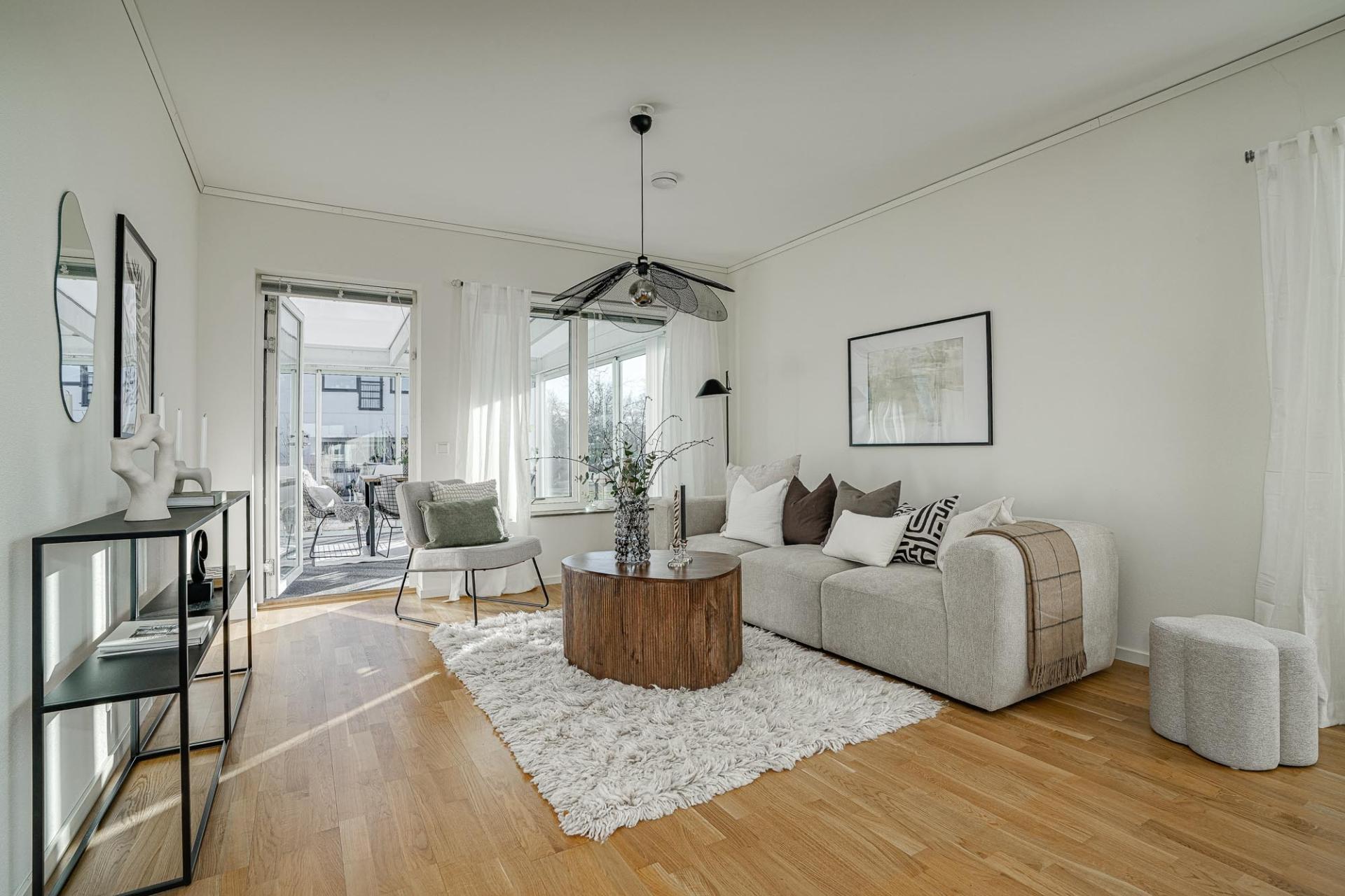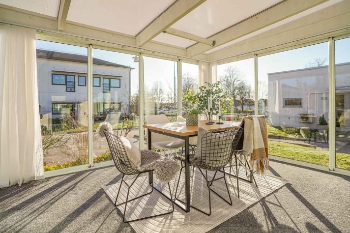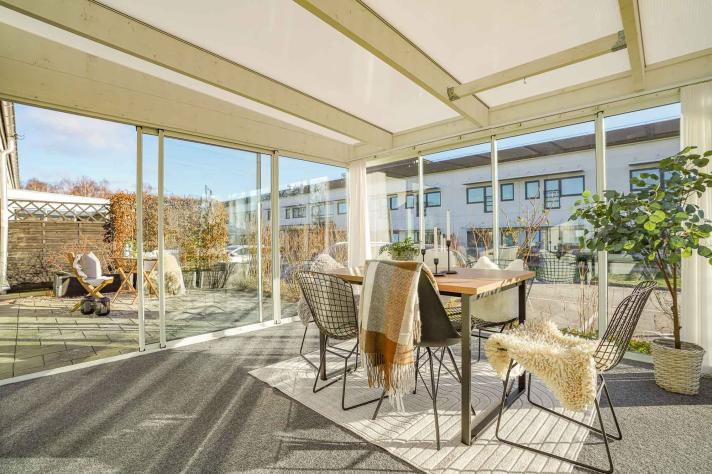 Vill du bo lättskött med villakänsla? Då är detta bostaden för dig! Vi kan nu erbjuda en lägenhet om tre rum och kök som väntar på att nya ägare ska flytta in och trivas. Genomgående stilrena materialval med kök från HTH och kapitalvaror från Siemens. Inglasat uterum och uteplats där vi gärna sitter och njuter en skön sommarkväll. Ett stenhus är inte bara tilltalande för ögat utan uppfattas och upplevs med flera andra sinnen. Man får ett naturligt inomhusklimat genom egenskapen stenen har att magasinera värme. Temperaturen i huset blir jämn och behaglig och det är varmt på vintern och svalt på sommaren. Husets stomme har en låg klimatpåverkan och är 100% återvinningsbar. Allt detta skapar den helhet som många eftersträvar. Boendet på Vallås passar såväl för det äldre paret som för barnfamiljen!