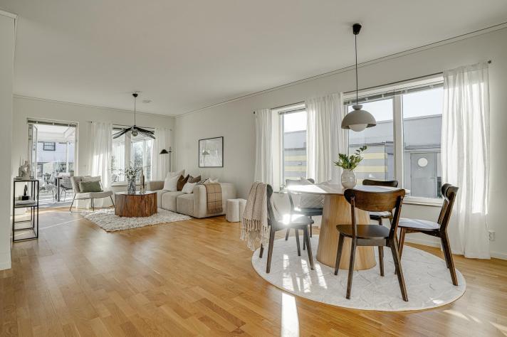 Välkommen på visning när det passar dig! Här vandrar du runt i bostaden genom att klicka dig framåt i ringarna, precis som i Google Streetview. Ta dig tid att titta närmare på tapeter, golv eller utsikt - du väljer! Allt som krävs är att din webbläsare stöder 3D, Open GL - välkommen hem!