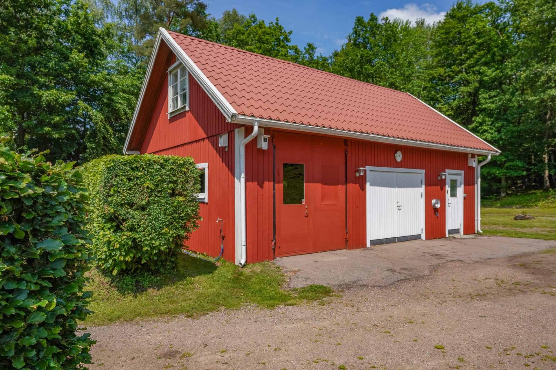 Ett stort mervärde är den separata ekonomibyggnaden om 66 kvm med dubbelgarage, förrådsdel samt gästrum på vinden – perfekt för övernattande gäster eller extra utrymme för hobbyverksamhet.
