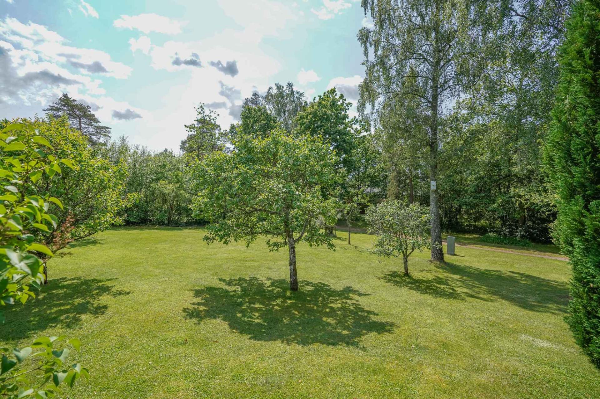 Tomten är en skyddad och naturskön oas med skogsdungar och grönska. Nuvarande ägare har skapat en variationsrik och blommande trädgård som bjuder på färgprakt från tidig vår till sen höst. Här promenerar du i stillhet, omgiven av fågelkvitter och doften av skog och mark.