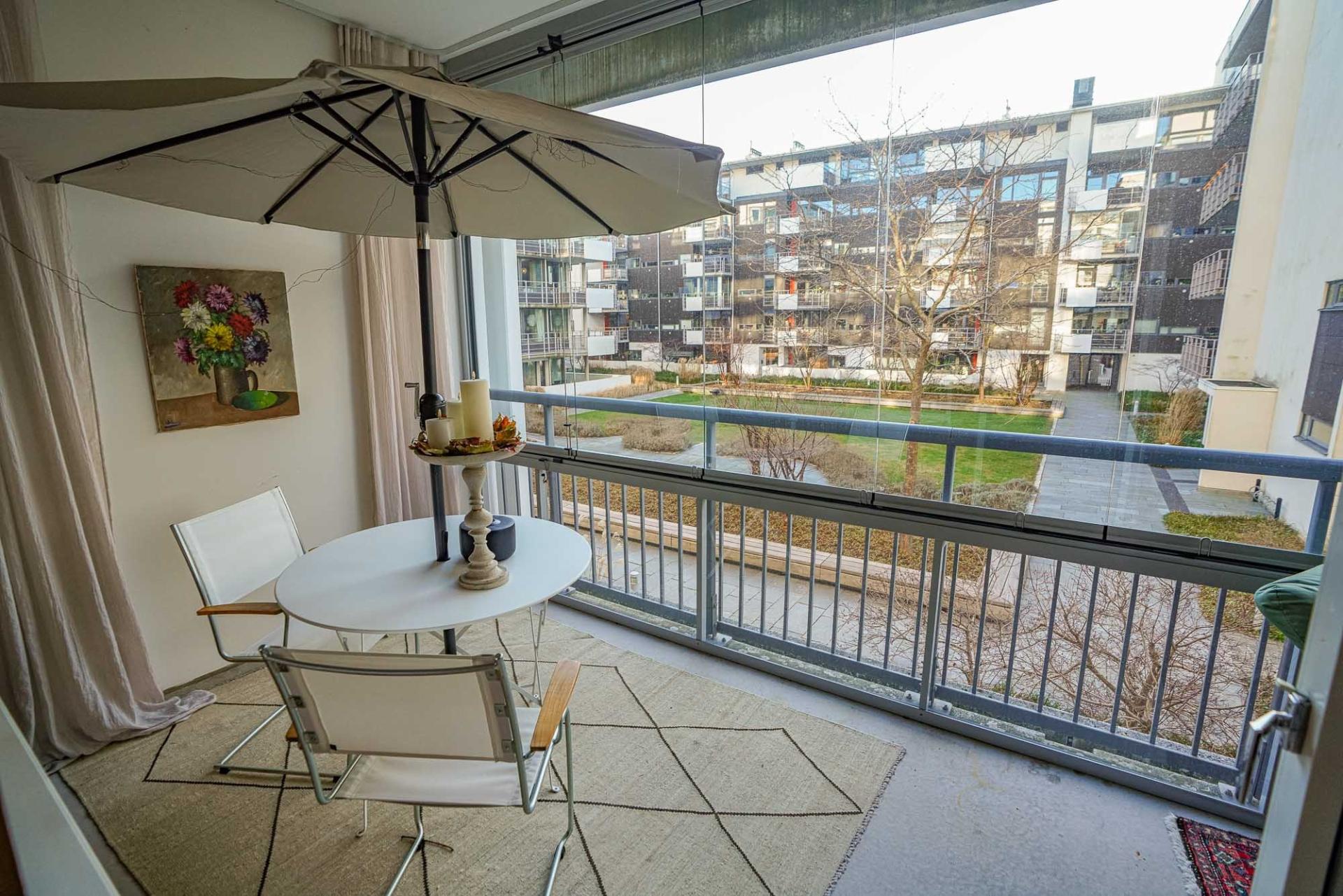 Välplanerade ytor och stor inglasad balkong!