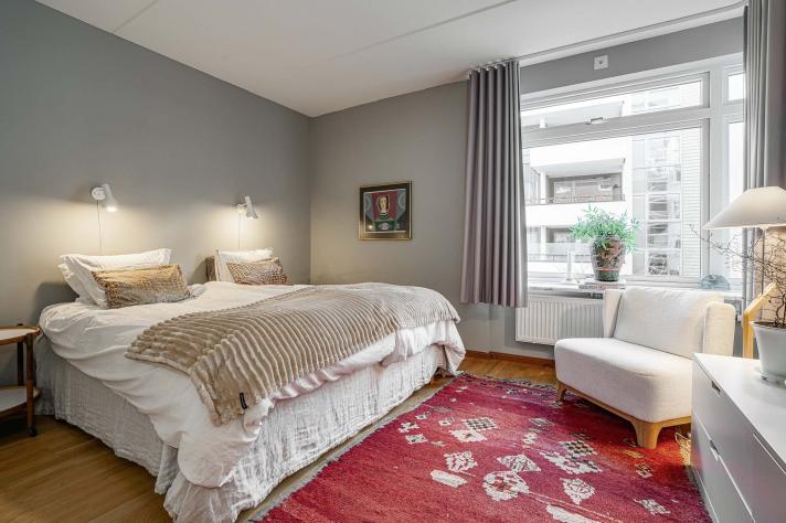 Lägg märke till en generös takhöjd, höga dörrposter, vackra listverk och extra fönster ovan sovrumsdörr som sprider ljuset genom hela bostaden!
