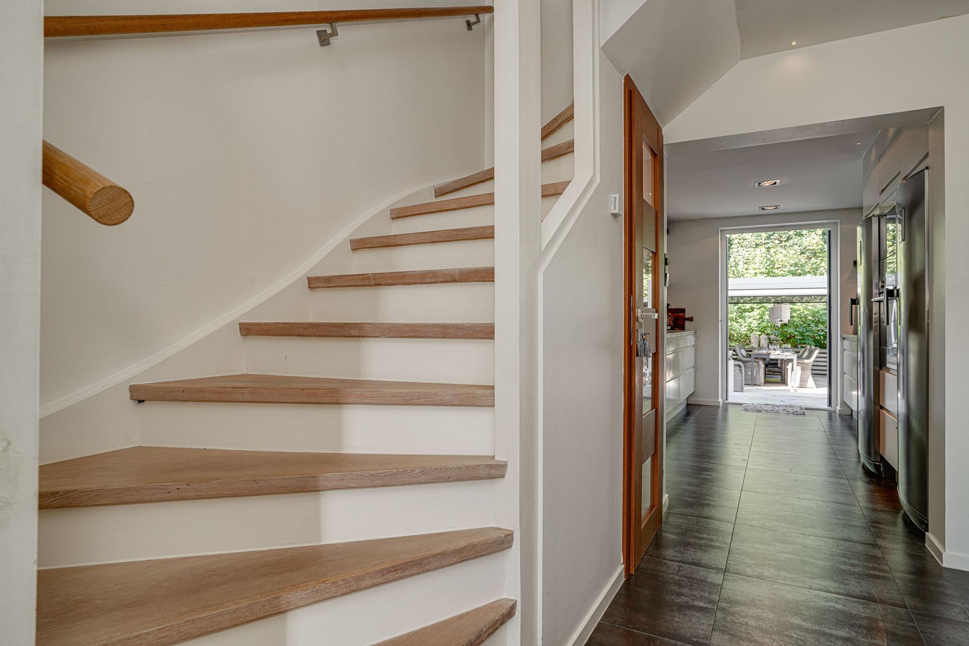 Här erbjuds ett boende som imponerar redan vid första intrycket. Entrén välkomnar med en prydligt anlagd framsida med stensättning, stilfull uteplats och insynsskyddande avenbokshäck – en perfekt plats för morgonkaffet.