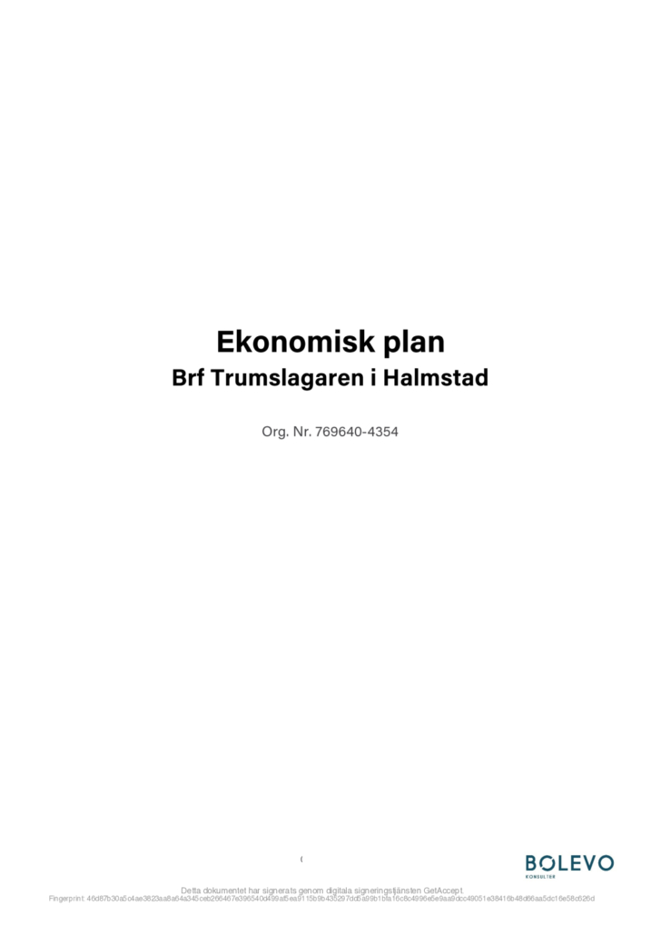 En ekonomisk plan visar den ekonomiska och tekniska beskrivningen av bostadsrättsföreningens verksamhet över en period på 11 år. Innan en bostadsrättsförening får upplåta lägenheter med bostadsrätt måste föreningen upprätta en ekonomisk plan, som skall granskas av en av Bolagsverket behörig intygsgivare och sedan registreras hos Bolagsverket. Den ekonomiska planen är offentlig och kan vid behov beställas från Bolagsverket. Sker förändringar av väsentlig betydelse skall en ny ekonomisk plan upprättas. Kostnaderna i kalkylen är de slutliga kostnaderna för föreningens hus.